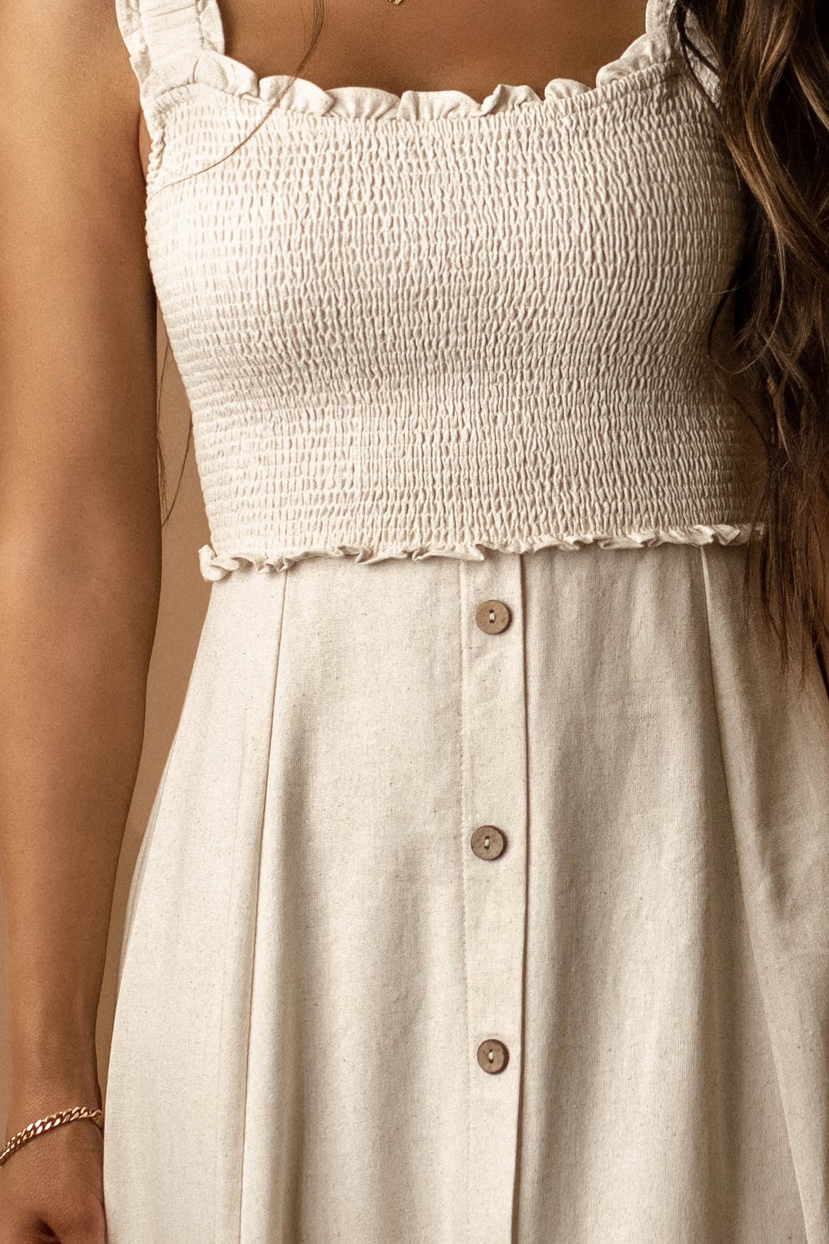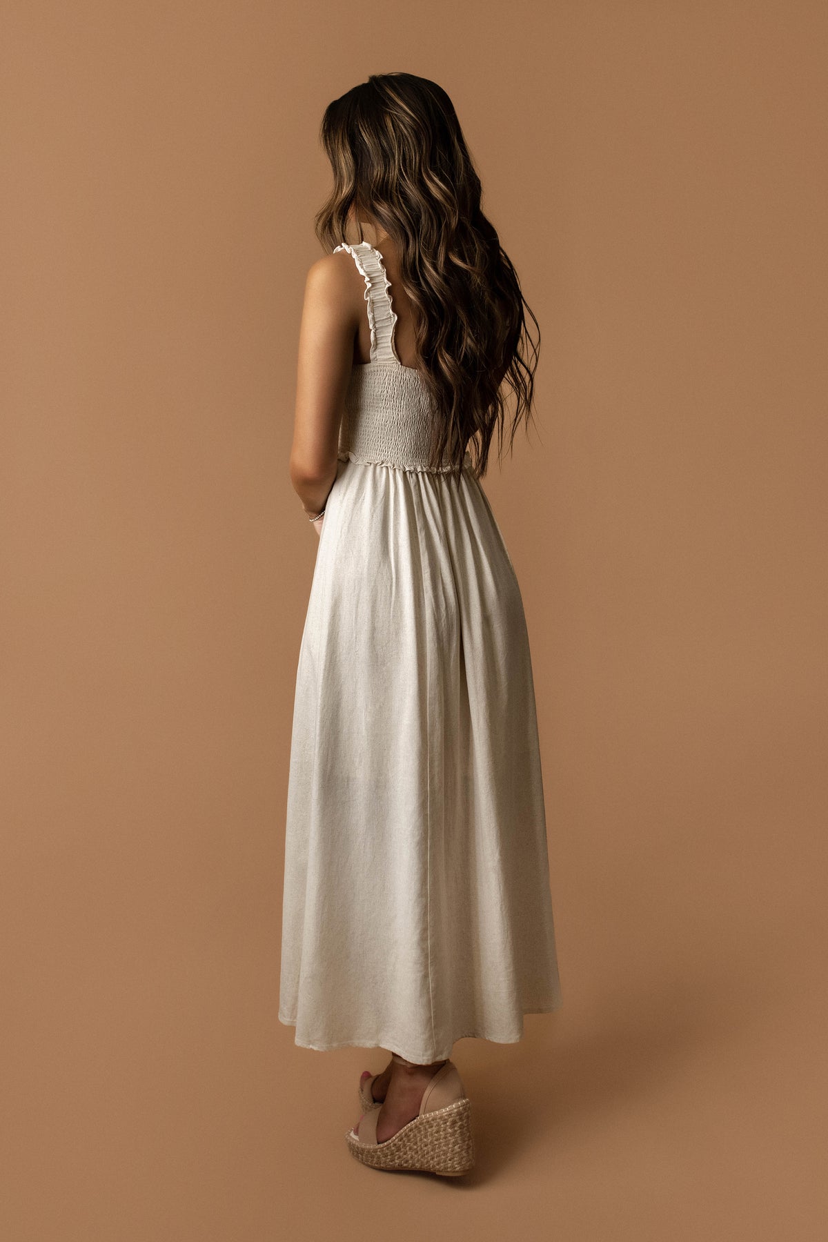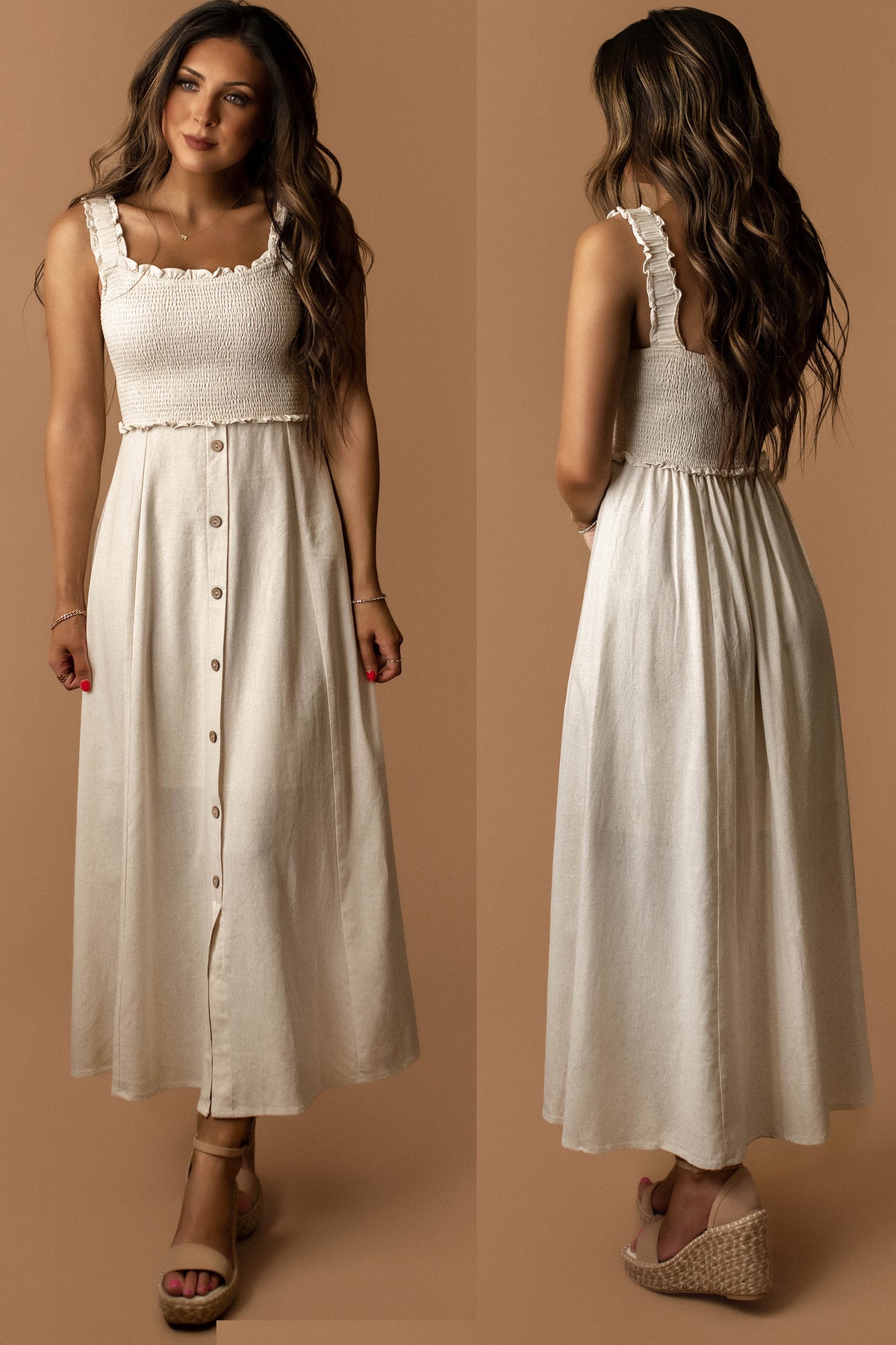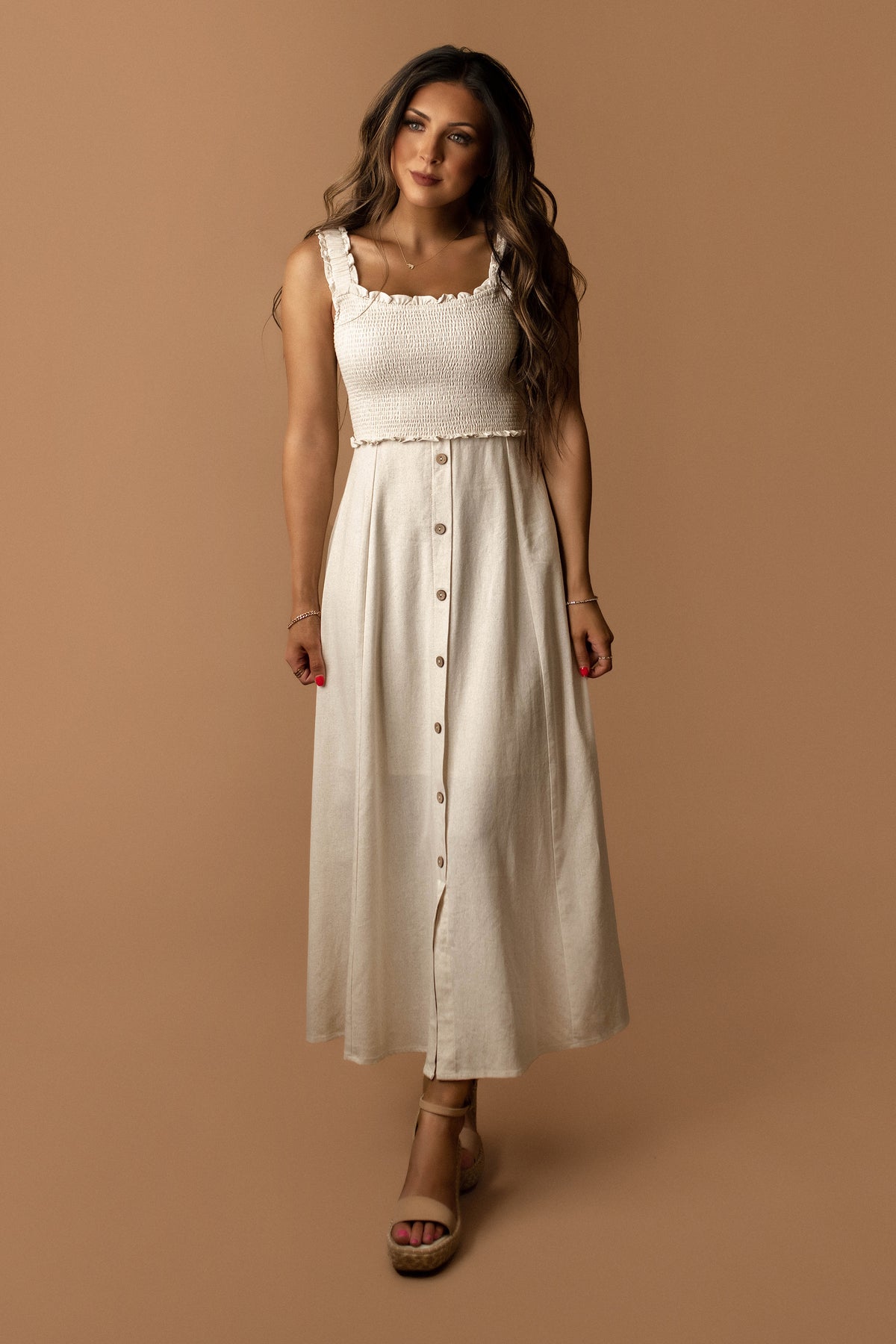 {"id":7883044421715,"title":"Dancing On The Moon Smocked Midi Dress (Natural)","handle":"dancing-on-the-moon-smocked-midi-dress-natural","description":"\u003cdiv class=\"product-block\"\u003e\n\u003cdiv class=\"rte\"\u003e\n\u003cdiv class=\"product-block\"\u003e\n\u003cdiv class=\"rte\"\u003e\n\u003cp\u003e \u003c\/p\u003e\n\u003cul\u003e\n\u003cli\u003eSquare neckline\u003c\/li\u003e\n\u003cli\u003eSmocked elastic bust\u003c\/li\u003e\n\u003cli\u003eRuffle straps\u003cbr\u003e\n\u003c\/li\u003e\n\u003cli\u003eFunctional button front\u003c\/li\u003e\n\u003cli\u003e\u003cspan\u003eLined\u003c\/span\u003e\u003c\/li\u003e\n\u003cli\u003eNatural ivory color\u003c\/li\u003e\n\u003cli\u003e80% rayon, 15% linen, 5% cotton\u003c\/li\u003e\n\u003c\/ul\u003e\n\u003cp\u003eModel is 5'3, size 3\/25 (26\" waist, 34\" bust) wearing a small\u003c\/p\u003e\n\u003cp\u003e\u003cstrong\u003eSizing Recommendations: True to size\u003c\/strong\u003e\u003c\/p\u003e\n\u003cul\u003e\n\u003cul\u003e\n\u003cli\u003e\n\u003cp\u003eSmall 2\/4\u003c\/p\u003e\n\u003c\/li\u003e\n\u003cli\u003e\n\u003cp\u003eMedium 6\/8\u003c\/p\u003e\n\u003c\/li\u003e\n\u003cli\u003e\n\u003cp\u003eLarge 10\/12\u003c\/p\u003e\n\u003c\/li\u003e\n\u003c\/ul\u003e\n\u003c\/ul\u003e\n\u003c\/div\u003e\n\u003c\/div\u003e\n\u003c\/div\u003e\n\u003c\/div\u003e","published_at":"2026-02-11T00:54:14-07:00","created_at":"2026-02-11T00:48:23-07:00","vendor":"Wild Summer Boutique","type":"Dress","tags":["brown","CR2265MINE","neutral"],"price":5800,"price_min":5800,"price_max":5800,"available":true,"price_varies":false,"compare_at_price":null,"compare_at_price_min":0,"compare_at_price_max":0,"compare_at_price_varies":false,"variants":[{"id":44048409002067,"title":"S","option1":"S","option2":null,"option3":null,"sku":null,"requires_shipping":true,"taxable":true,"featured_image":null,"available":true,"name":"Dancing On The Moon Smocked Midi Dress (Natural) - S","public_title":"S","options":["S"],"price":5800,"weight":0,"compare_at_price":null,"inventory_management":"shopify","barcode":null,"requires_selling_plan":false,"selling_plan_allocations":[]},{"id":44048409034835,"title":"M","option1":"M","option2":null,"option3":null,"sku":null,"requires_shipping":true,"taxable":true,"featured_image":null,"available":true,"name":"Dancing On The Moon Smocked Midi Dress (Natural) - M","public_title":"M","options":["M"],"price":5800,"weight":0,"compare_at_price":null,"inventory_management":"shopify","barcode":null,"requires_selling_plan":false,"selling_plan_allocations":[]},{"id":44048409067603,"title":"L","option1":"L","option2":null,"option3":null,"sku":null,"requires_shipping":true,"taxable":true,"featured_image":null,"available":true,"name":"Dancing On The Moon Smocked Midi Dress (Natural) - L","public_title":"L","options":["L"],"price":5800,"weight":0,"compare_at_price":null,"inventory_management":"shopify","barcode":null,"requires_selling_plan":false,"selling_plan_allocations":[]}],"images":["\/\/shopwildsummer.com\/cdn\/shop\/files\/CMP_3810-edit8WEBcollage.jpg?v=1770796388","\/\/shopwildsummer.com\/cdn\/shop\/files\/CMP_3810-edit8WEBcrop.jpg?v=1770796388","\/\/shopwildsummer.com\/cdn\/shop\/files\/CMP_3810-edit8WEB.jpg?v=1770796388","\/\/shopwildsummer.com\/cdn\/shop\/files\/CMP_3827-edit5WEB.jpg?v=1770796380"],"featured_image":"\/\/shopwildsummer.com\/cdn\/shop\/files\/CMP_3810-edit8WEBcollage.jpg?v=1770796388","options":["Size"],"media":[{"alt":null,"id":32090179633235,"position":1,"preview_image":{"aspect_ratio":0.667,"height":3000,"width":2000,"src":"\/\/shopwildsummer.com\/cdn\/shop\/files\/CMP_3810-edit8WEBcollage.jpg?v=1770796388"},"aspect_ratio":0.667,"height":3000,"media_type":"image","src":"\/\/shopwildsummer.com\/cdn\/shop\/files\/CMP_3810-edit8WEBcollage.jpg?v=1770796388","width":2000},{"alt":null,"id":32090179666003,"position":2,"preview_image":{"aspect_ratio":0.666,"height":1745,"width":1163,"src":"\/\/shopwildsummer.com\/cdn\/shop\/files\/CMP_3810-edit8WEBcrop.jpg?v=1770796388"},"aspect_ratio":0.666,"height":1745,"media_type":"image","src":"\/\/shopwildsummer.com\/cdn\/shop\/files\/CMP_3810-edit8WEBcrop.jpg?v=1770796388","width":1163},{"alt":null,"id":32090179600467,"position":3,"preview_image":{"aspect_ratio":0.667,"height":3000,"width":2000,"src":"\/\/shopwildsummer.com\/cdn\/shop\/files\/CMP_3810-edit8WEB.jpg?v=1770796388"},"aspect_ratio":0.667,"height":3000,"media_type":"image","src":"\/\/shopwildsummer.com\/cdn\/shop\/files\/CMP_3810-edit8WEB.jpg?v=1770796388","width":2000},{"alt":null,"id":32090179698771,"position":4,"preview_image":{"aspect_ratio":0.667,"height":3000,"width":2000,"src":"\/\/shopwildsummer.com\/cdn\/shop\/files\/CMP_3827-edit5WEB.jpg?v=1770796380"},"aspect_ratio":0.667,"height":3000,"media_type":"image","src":"\/\/shopwildsummer.com\/cdn\/shop\/files\/CMP_3827-edit5WEB.jpg?v=1770796380","width":2000}],"requires_selling_plan":false,"selling_plan_groups":[],"content":"\u003cdiv class=\"product-block\"\u003e\n\u003cdiv class=\"rte\"\u003e\n\u003cdiv class=\"product-block\"\u003e\n\u003cdiv class=\"rte\"\u003e\n\u003cp\u003e \u003c\/p\u003e\n\u003cul\u003e\n\u003cli\u003eSquare neckline\u003c\/li\u003e\n\u003cli\u003eSmocked elastic bust\u003c\/li\u003e\n\u003cli\u003eRuffle straps\u003cbr\u003e\n\u003c\/li\u003e\n\u003cli\u003eFunctional button front\u003c\/li\u003e\n\u003cli\u003e\u003cspan\u003eLined\u003c\/span\u003e\u003c\/li\u003e\n\u003cli\u003eNatural ivory color\u003c\/li\u003e\n\u003cli\u003e80% rayon, 15% linen, 5% cotton\u003c\/li\u003e\n\u003c\/ul\u003e\n\u003cp\u003eModel is 5'3, size 3\/25 (26\" waist, 34\" bust) wearing a small\u003c\/p\u003e\n\u003cp\u003e\u003cstrong\u003eSizing Recommendations: True to size\u003c\/strong\u003e\u003c\/p\u003e\n\u003cul\u003e\n\u003cul\u003e\n\u003cli\u003e\n\u003cp\u003eSmall 2\/4\u003c\/p\u003e\n\u003c\/li\u003e\n\u003cli\u003e\n\u003cp\u003eMedium 6\/8\u003c\/p\u003e\n\u003c\/li\u003e\n\u003cli\u003e\n\u003cp\u003eLarge 10\/12\u003c\/p\u003e\n\u003c\/li\u003e\n\u003c\/